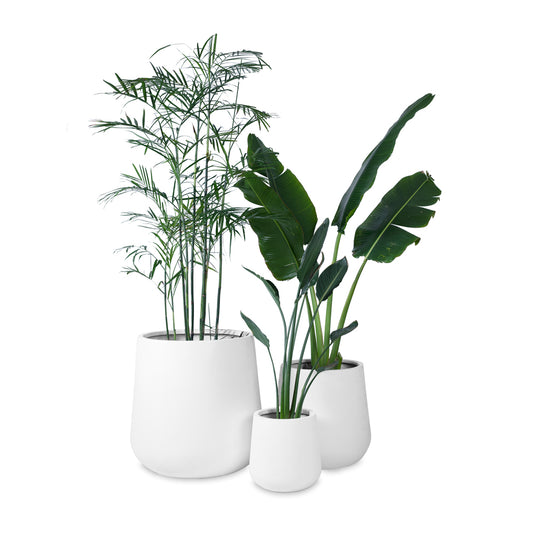 This round large planter set is an ideal fit for classic and contemporary residences and gardens. Its sleek, tall structure makes it perfect for a single planter or as a set of three. This large FRP planter in a grey colour box is sure to become  a statement planter in your home or balcony.