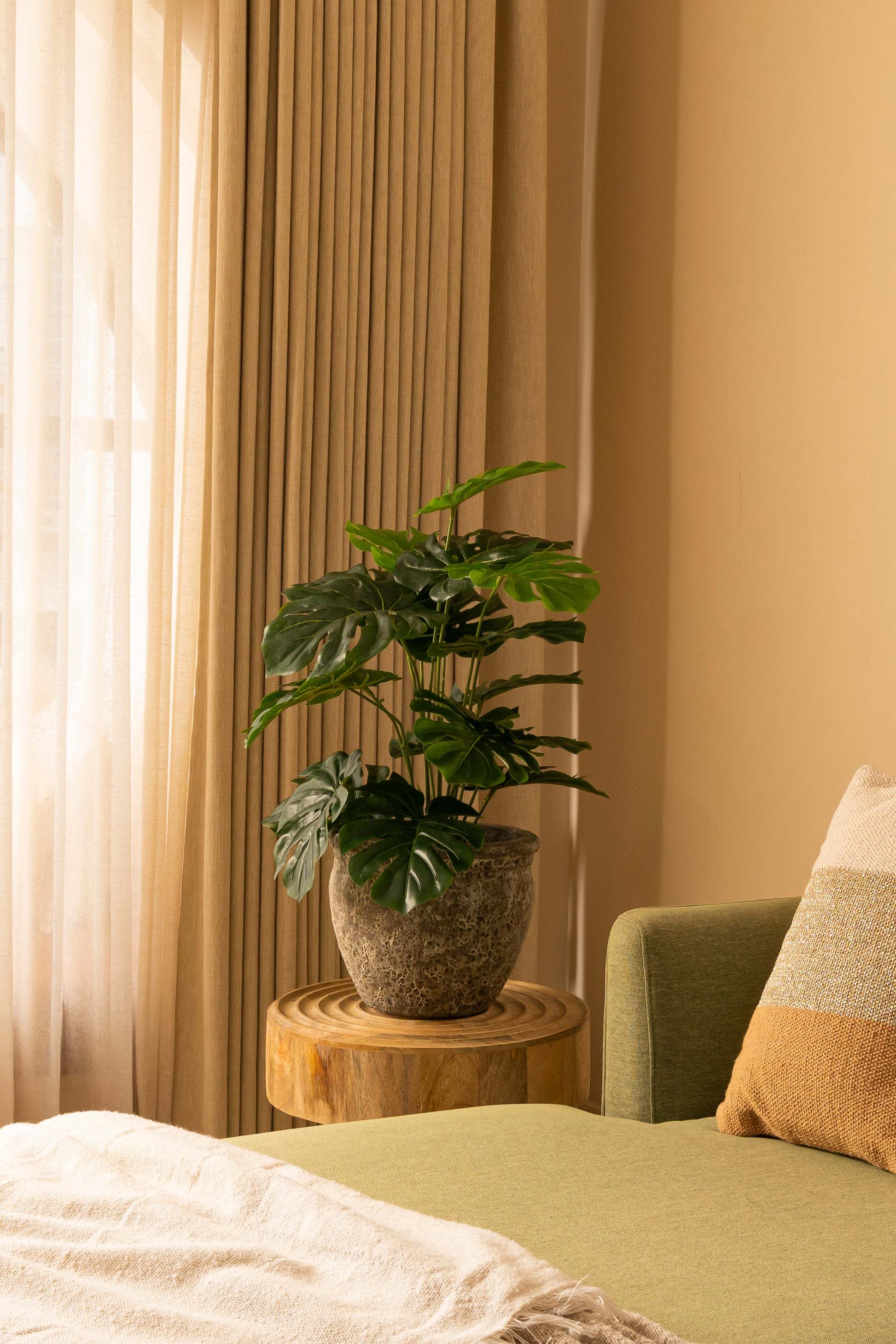 Make a bold green statement with our Faux Monstera Plant. Featuring large, iconic split leaves and lush texture, this botanical beauty adds tropical drama and sculptural flair to your interiors—without the maintenance.