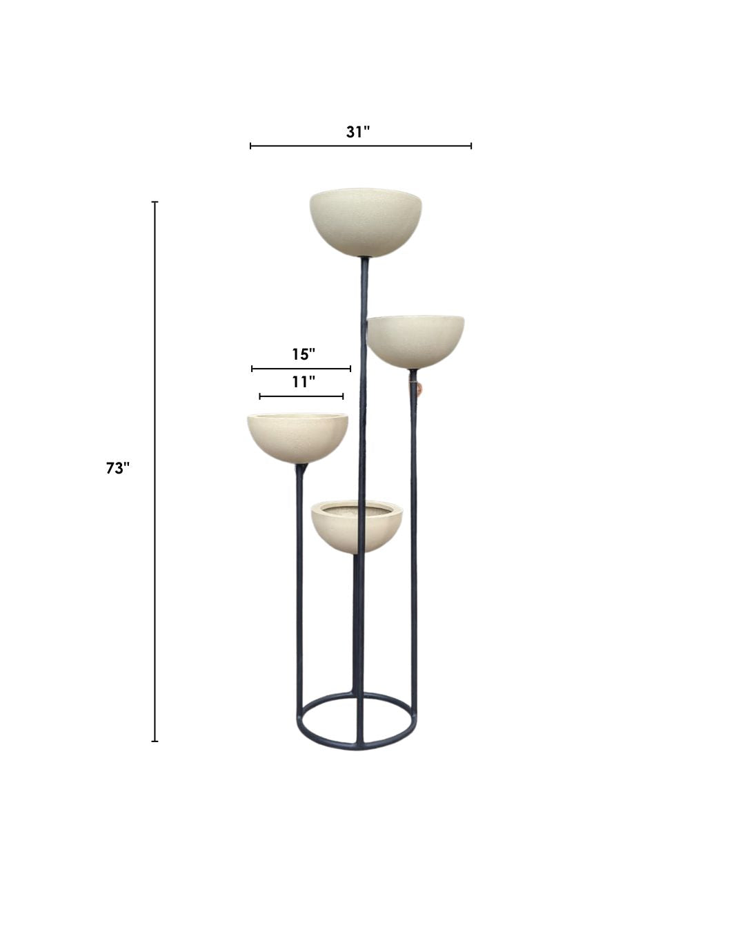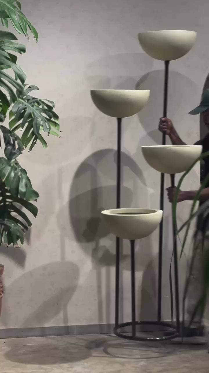 Showcase your favorite plants in style with this multi-tier plant stand. This modern piece features four beautifully crafted planter bowls supported by a sturdy black metal frame. The staggered heights create a stunning cascading display, perfect for adding dimension to any indoor or outdoor space.