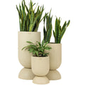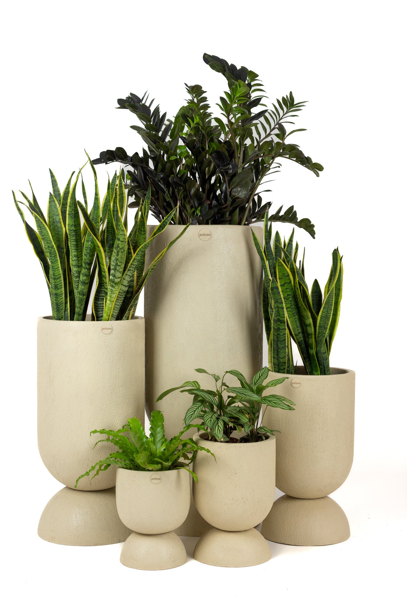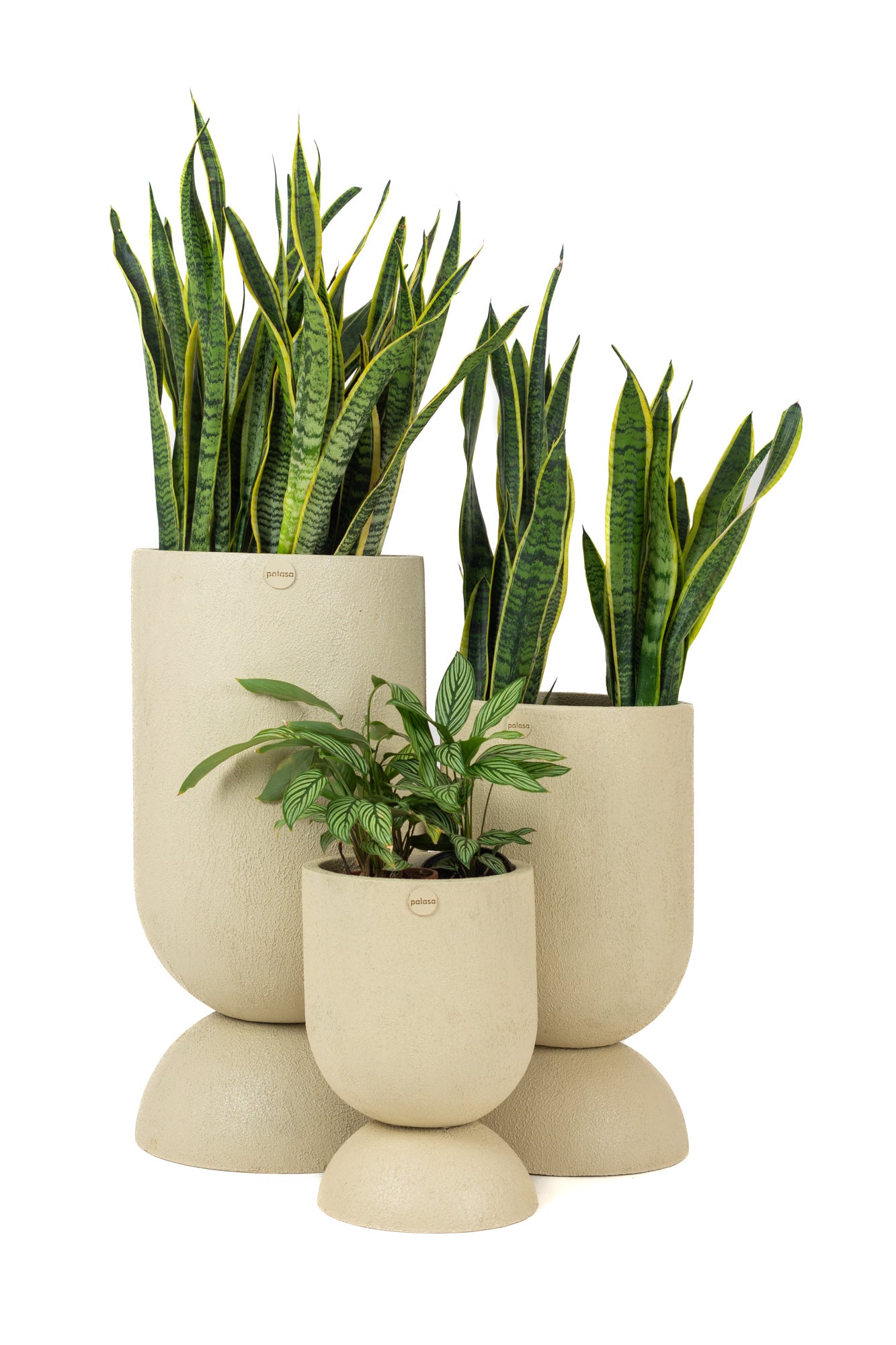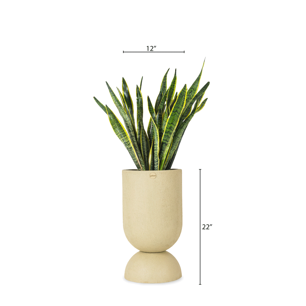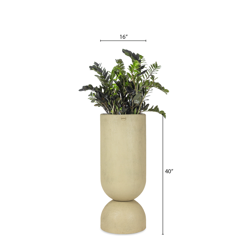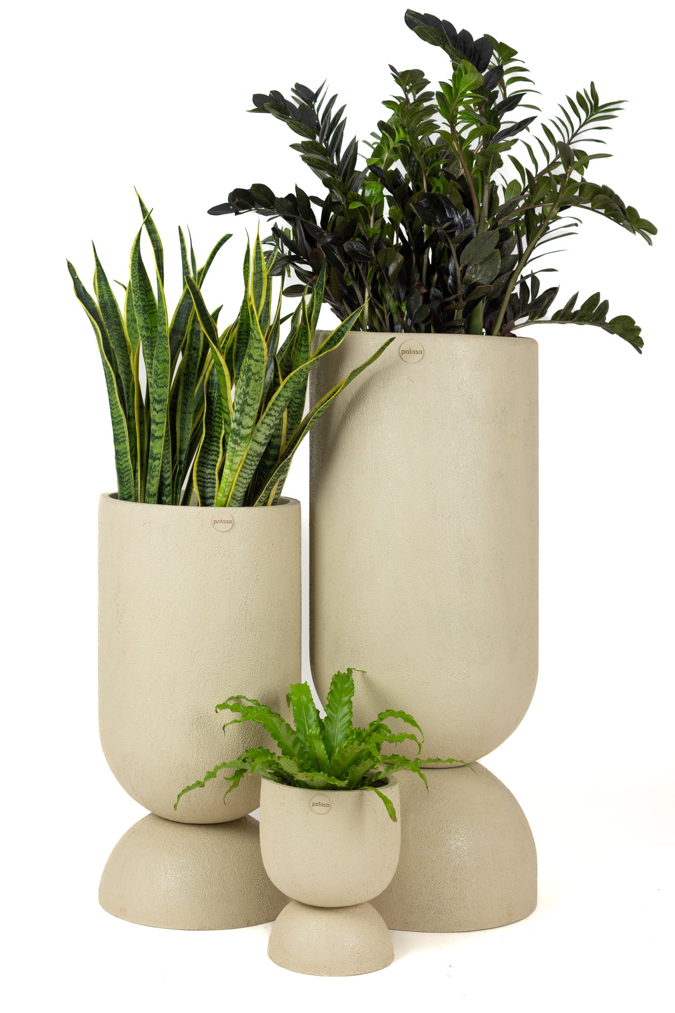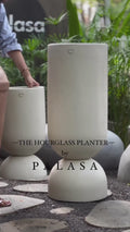 The Hourglass Planter by Palasa has a modern design and beige neutral hue. Crafted by hand this premium FRP indoor and outdoor planter works well in blending indoor and outdoor spaces.